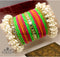 Our Bespoke Bangle set designed using multiple bangles decorations. Combination of Kundan's and pearls paired with crystal and colorful dotted bangles to define the final look.