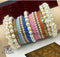 Our Bespoke Bangle set designed using multiple bangles decorations. Combination of gems , stones , kundans and pearls paired with crystal and Red dotted bangles to define the final look.