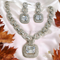 Mossanite Polki Set in 22k goldplatting, copper base embellished with zircons and Polki settings. Finest meenakari work and victorian look. Fully handmade