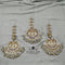 Traditional Jhumkay Earrings and tika in 22k gold platting and copper base , embelished with zirconiums and real hangings