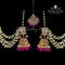 Traditional Earrings and tika in 22k gold platting and copper base , embelished with zirconiums and real hangings
