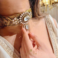 Step into timeless grandeur with this stunning modern jewellery set, crafted with premium uncut mossanite Polki diamonds. The bold mossanite Polki necklace makes a powerful statement, while the intricately designed modern studs elevate your overall look with unmatched elegance. You can definitely layer it with some other necklaces also