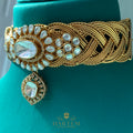 Handcrafted with care, this set is the perfect accessory for adding a touch of elegance to any outfit. Elevate your style with this exquisite and unique piece of jewelry. Perfect for weddings, bridal wear, mehndi, barat, Qawali nights, shalima, walima, and grand festive events, this designer jewellery set exudes sophistication and heirloom charm. A masterpiece that blends heritage artistry with modern bridal fashion, making it a treasure to cherish for generations.