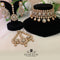 Mossanite Polki Set in 22k goldplatting, copper base embellished with heated , Feroza , rubies , jades and polki settings.Fully handmade