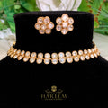 Polki Set, carefully Studded American Diamond with Carat Gold Plating. Elegant Lightweight Earrings goldplatting, copper base embellished with 3A cuttings zirconiums polkis and finest quality. Adjustable from the Backside. High-Quality Jewelry Designed for Elegance and Comfort. Fully handmade
